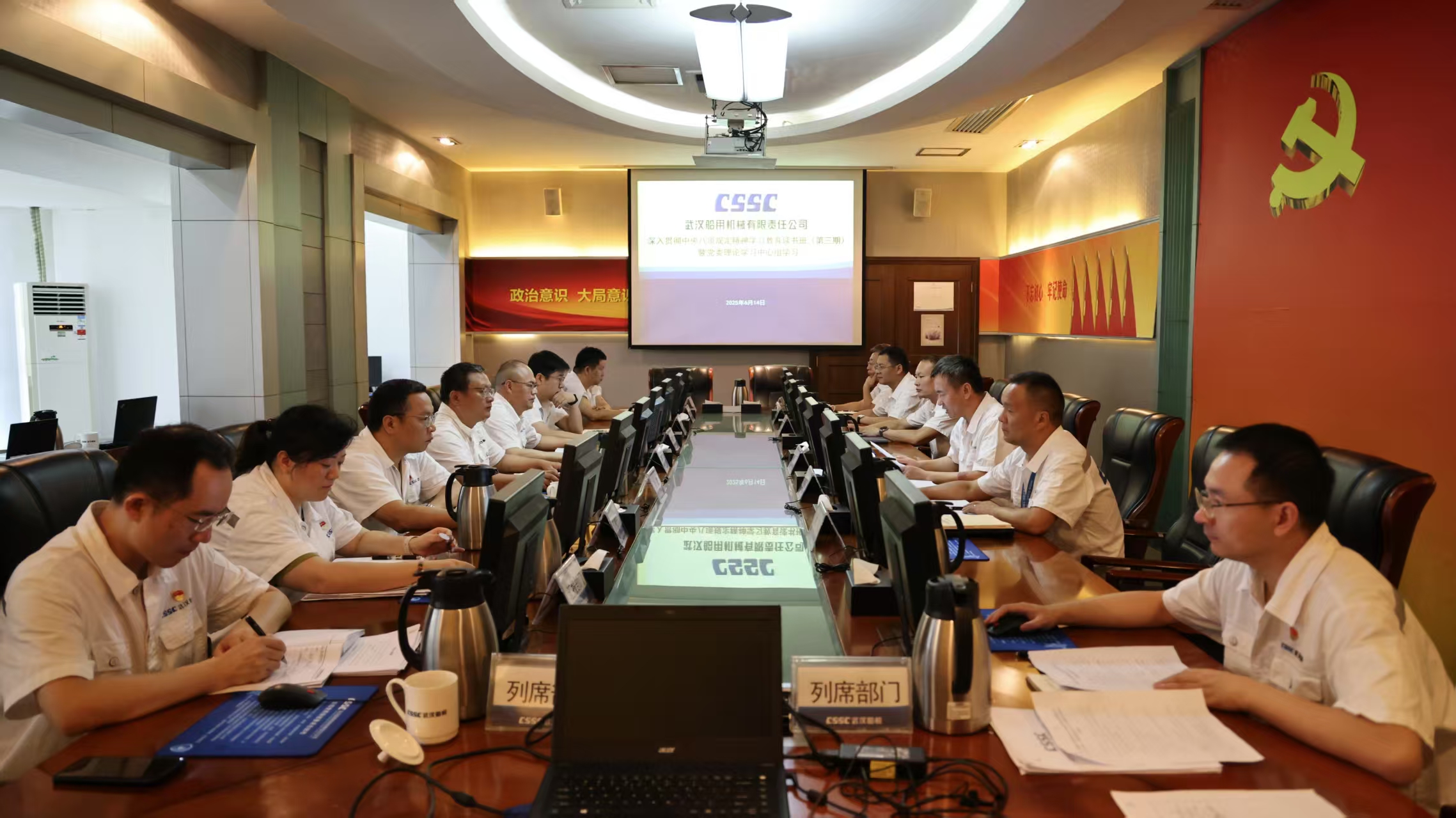 6月14日,中船集團武漢船機黨委召開深入貫徹中央八項規定精神學習教育讀書班(第三期)暨黨委理論學習中心組學習會議。公司黨委副書記、總經理程立兵主持會議并領學。公司黨委理論學習中心組成員參加學習研討,總經理助理、學習教育工作專班成員列席會議。